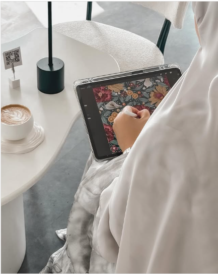 I'm Bothainah Art, the Emirati creative artist behind Telas Design Studio. I've always been captivated by the magic of design and the beauty of textiles, and the fashion world. A few years ago, I followed my passion for digital illustration, graphic design, and surface patterns and started this exciting journey. I am inspired by Nature and traveling moments on my art and design journey.
